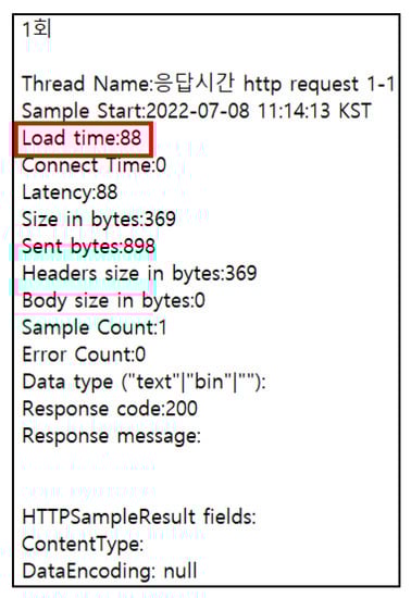 Apache jMeter execution log example. (For your information, In this figure, the non-English term “응답시간” means “response time” in English).