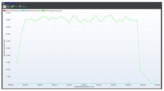 Reliability of message delivery is important for many IoT use cases [10]. Therefore, MQTT has three defined quality of service (QoS) levels: 0—at most once, 1—at least once, and 2—exactly once. The QoS refers to a level that guarantees the quality of service. An appropriate QoS level should be selected according to the type of service. In this study, the QoS level was set to 0 because speed is prioritized over the reliability of data generated by sensors.