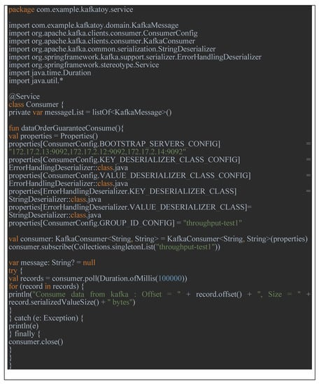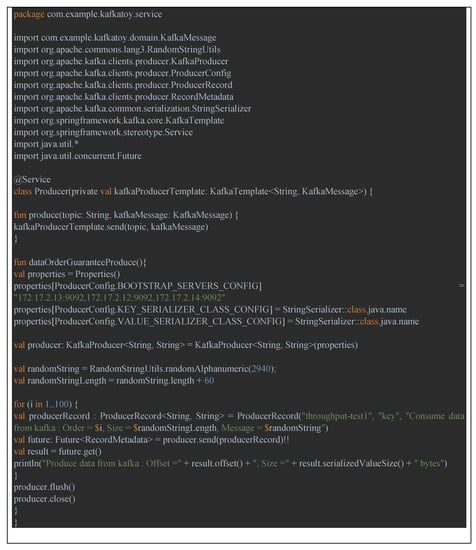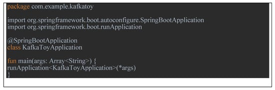 The example program for this performance evaluation was developed using Spring Boot. Therefore, since this program should be executed through the spring server, we executed the main program in Figure 21 by creating objects for producer and consumer classes to run the server. Later, when a user request arrives at the server, the server dispatches it and executes it.