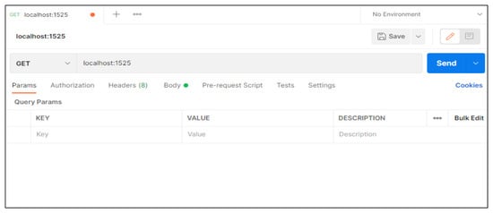 - Run Postman, enter the address to send the GET request to as Figure 22, and send.