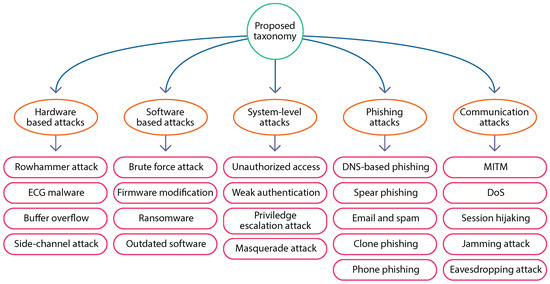 System-level attacks are those attacks where an attacker explicitly targets the system-level resources by discovering loopholes in the authentication schemes, authorization, and cryptographic key management infrastructure. In the smart healthcare sector, the patient’s medical data have to be transmitted from various devices and services to reach their intended recipients. An attacker finds the system-level vulnerability to gain access to the patient’s data and disrupts the performance of smart healthcare systems. Several researchers have proposed robust authentication schemes to overcome the aforementioned issues and reduce the impact of system-level attacks. For example, Le et al. in [94] proposed a three-stage authentication mechanism consisting of a smart card, password, and biometrics to ensure secure authentication between patients and healthcare providers. Then, they evaluated their proposed protocol using standard verification tools, i.e., real-or-random model, automated validation of internet security protocol, and Burrows–Abadi–Needham logic, wherein they outperform in terms of cost and secure functionalities compared to other baseline works. A two-stage authentication mechanism was proposed in [95] which involved hardware security, i.e., physical unclonable functions for IoT-based healthcare systems. Since the physical unclonable functions do not use cryptographic solutions, they can easily be integrated into the resource-constrained devices to offer lightweight authentication schemes. The proposed mechanism provides better computation time and offers robust security against system-level attacks in the smart healthcare ecosystem. Another system-level attack can be launched via privilege escalation techniques, where the attacker first carries out a reconnaissance of a victim’s system to find hardware or software-related vulnerabilities that can be exploited at a later stage. Yin et al. in [96] presented a novel static analysis framework that detects privilege escalation attacks in a unified extensible firmware interface (UEFI). The authors used a callback programming procedure to find malicious callable functions in the UEFI firmware. They collected 1148 UEFI binaries from different vendors, and discovered 36 privilege escalation vulnerabilities. Those vulnerabilities can cause random code execution and allow an attacker to modify the writing operation of the physical device.