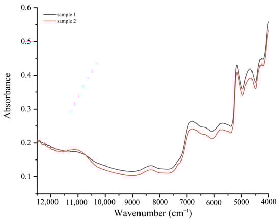 Golden Tartary buckwheat leaves’ original near-infrared spectrum. Sample 1 and sample 2 represents: two varieties of Golden Tartary buckwheat with different leucine and tyrosine contents in leaves.