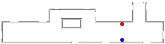 With these parameters, the outputs of the approach presented in this paper can be compared with the empirical Multi-Wall method used by the authors of [11]. The original floor plan is shown in Figure 3. The heat map over the floor plan with RSSI values is shown in Figure 4 for antenna 1 and Figure 5 for antenna 2.