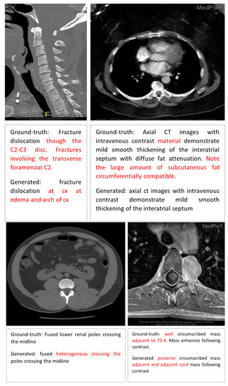 - Pelka, O.; Ben Abacha, A.; García Seco de Herrera, A.; Jacutprakart, J.; Friedrich, C.M.; Müller, H. Overview of the ImageCLEFmed 2021 Concept & Caption Prediction Task. In Proceedings of the CLEF2021 Working Notes, CEUR Workshop Proceedings, CEUR-WS.org, Bucharest, Romania, 21–24 September 2021. [Google Scholar]