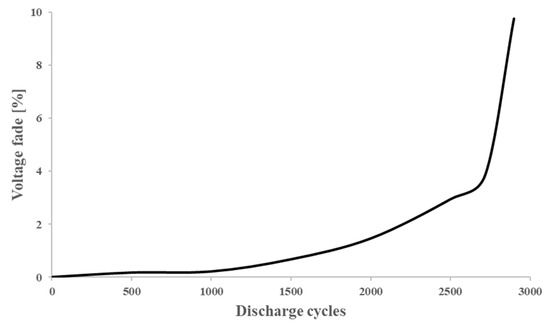 Nissan leaf second life battery voltage fade in various discharge cycles [,,,].