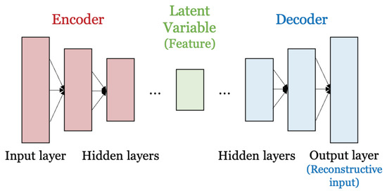 Figure 1 shows the structure of the autoencoder model. The autoencoder consists of an encoder and a decoder, and it is an artificial neural network trained with an unsupervised learning method that learns without data labels [3]. It first learns the representation encoded in the data and then aims to produce an output value from the learned encoding representation as close as possible to the input data. Thus, the output of the autoencoder is a prediction of the input. The autoencoder generates a latent variable that is the result of extracting the features of the input data through the encoder neural network. After this, the latent variable (i.e., the output of the encoder) is input into the decoder neural network. The decoder reconstructs the original data (i.e., the input data of the encoder) based on the latent variable. Unlike the classifier, it can extract the features of the data from the input and then reconstruct them again. Due to these characteristics, it is mainly used for noise removal [4], data visualization and reconstruction, and semantic extraction.