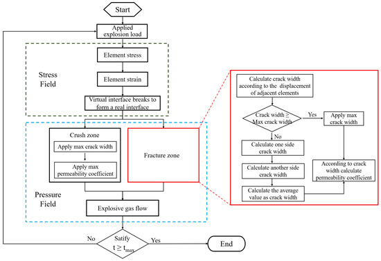 An iterative procedure is designed to trace the gas flow in the cracks. When the crack opens, the gas pressure of the nodes on the two crack surfaces is updated. The gas flow permeates further and results in increasing gas pressure in the deeper region. This iterative algorithm is shown in Figure 2.