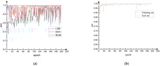 - Datasets of RGB, HSV, and LBP images of the different grades of aluminum were created; these three datasets were selected to train the model using ResNet18, comparing the accuracy of the three datasets for aluminum classification and recognition, and ultimately RGB images were selected as the best dataset.