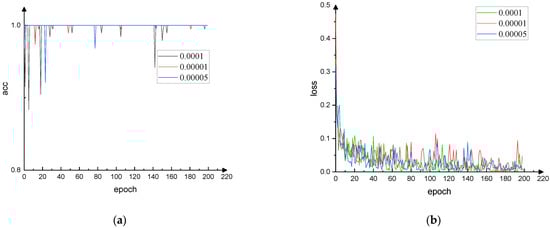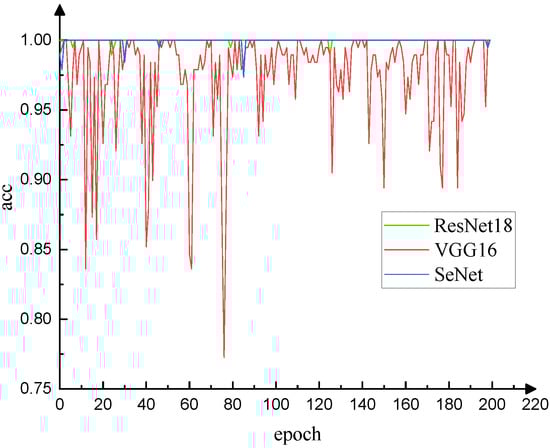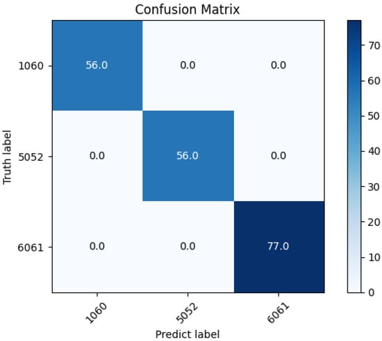 - Using the RGB dataset to train the ResNet18 model with a learning rate of 0.00001 and a batch size of 8, the classification and recognition rate for different grades of aluminum could reach 100%; comparing the training effects of different network models, ResNet18 had significant advantages in model stability and accuracy, compared with the traditional use of spectra for classification and recognition of different grades of similar materials. This paper achieved faster, higher-volume, and lower-cost classification and recognition of different grades of aluminum.