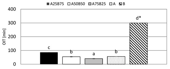 Results of the oxidation induction time (OIT) for the researched samples are presented in Figure 3.