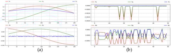 The results of the gravity compensation. (a) Uncompensated force data; (b) Compensated force data.