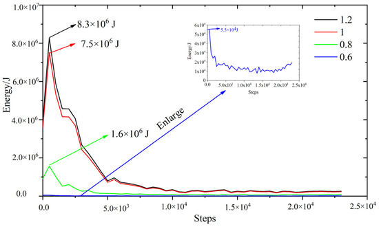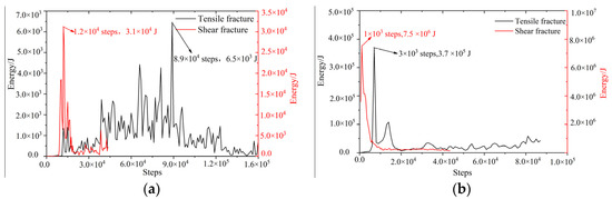 - The influencing laws of the source rupture form of the thick-hard strata and corresponding shear strength on the tremors were analyzed in detail. It was found that the released energy of the shear failure was greater than that of the tensile failure. In addition, with the increase in the shear strength of the thick-hard rock, the released energy from the source also increased.