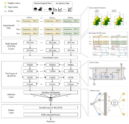 - This paper was the first attempt to combine multi-channel 1D CNNs, Bi LSTM, and attention mechanisms for hybrid fusion learning of PM2.5-related time series data, yielding a model which can capture spatial-temporal dependent features.