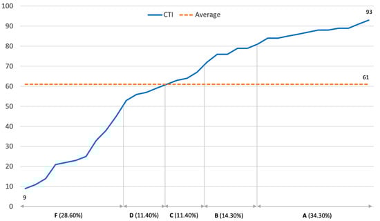 CTI score and grade distribution.