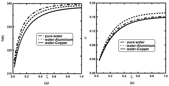 - The mass and heat exchange were improved by using the Cu–water nanofluid compared to the Al–water nanofluid.