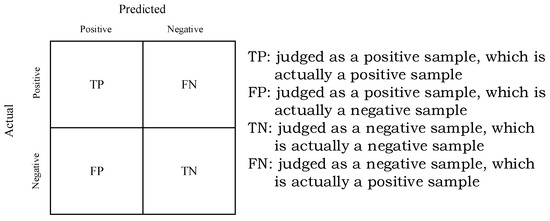 The meanings of TP, TN, FP, and FN are shown in Figure 5.