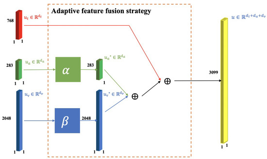 - Traditional feature fusion methods connect each modality’s features or add each modality’s characteristics. Since the parts of the speech modality are numerically different from those of the other two modalities, they are easily filtered out as noise in the network, so we propose an adaptive feature fusion strategy. The characteristic feature of this fusion strategy is that the fusion weights between the three modalities can be adjusted adaptively to simulate the inconsistency between multiple modalities;