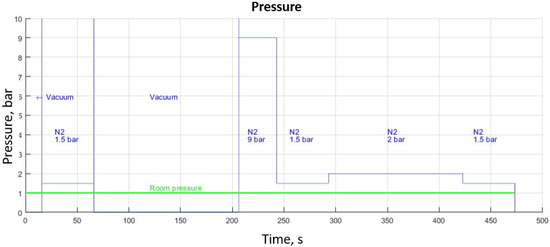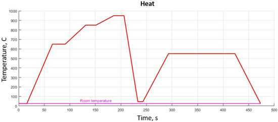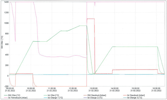- this was followed by heating to a constant temperature tempering (550 °C) at 1.5 bar pressure and kept for 2 h and 10 min at 2 bar pressure, as presented in Figure 4;