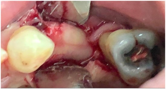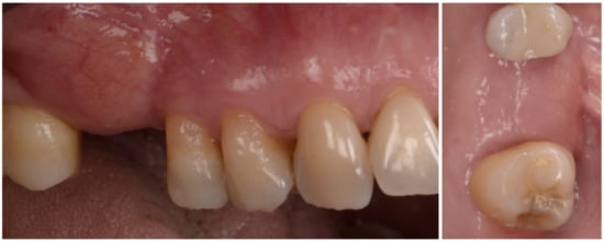 A 32-year-old female patient lost tooth 16 due to a fracture (Figure 5). After extraction, a significant defect in the edentulous ridge was evident also involving the distal of tooth 15 and mesial of 17. The pocket probing depth (PPD) at the distal of tooth 15 was 6 mm and the mesial of 17 was 7 mm.