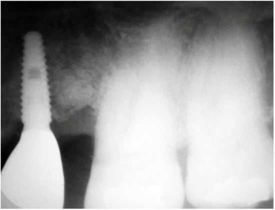 - Fontana, F.; Maschera, E.; Rocchietta, I.; Simion, M. Clinical classification of complications in guided bone regeneration procedure by means of a nonresorbable membrane. Int. J. Periodontics Restor. Dent. 2011, 31, 265–273. [Google Scholar]