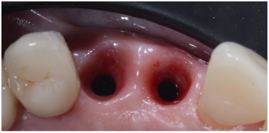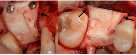 - Gallo, P.; Diaz-Baez, D. Management of 80 complications in vertical and horizontal ridge augmentation with nonresorbable membrane (d-PTFE): A cross-sectional study. Int. J. Oral Maxillofac. Implant. 2019, 34, 927–935. [Google Scholar] [CrossRef]
