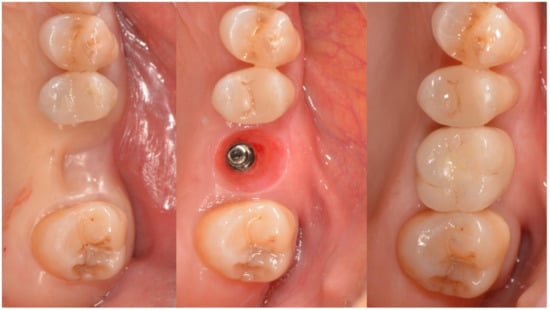 - Lazzara, R.J. Immediate implant placement into extraction sites: Surgical and restorative advantages. Int. J. Periodontics Restor. Dent. 1989, 9, 332–343. [Google Scholar]