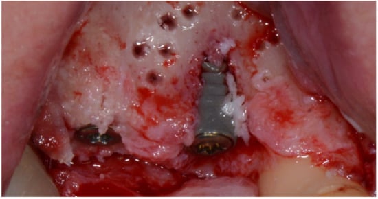 - Cucchi, A.; Vignudelli, E.; Napolitano, A.; Marchetti, C.; Corinaldesi, G. Evaluation of complication rates and vertical bone gain after guided bone regeneration with non-resorbable membranes versus titanium meshes and resorbable membranes. A randomized clinical trial. Clin. Implant Dent. Relat. Res. 2017, 19, 821–832. [Google Scholar] [CrossRef] [PubMed]
