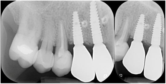- Schuh, P.L.; Wachtel, H.; Beuer, F.; Goker, F.; Del Fabbro, M.; Francetti, L.; Testori, T. Multi-Layer Technique (MLT) with porcine collagenated cortical bone lamina for bone regeneration procedures and immediate post-extraction implantation in the esthetic area: A retrospective case series with a mean follow-up of 5 years. Materials 2021, 14, 5180. [Google Scholar] [CrossRef]