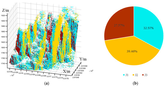 - Multi-source point cloud fusion technology ensures the accuracy and efficiency of rock mass point cloud data acquisition. In past studies, almost all scholars used a single method to obtain three-dimensional point cloud data of rock masses and extract rock discontinuities. For example, Ye [3], Ge [11], and Ning [31] all adopted ground 3D laser scanning technology or UAV photogrammetry technology to obtain 3D point cloud data of rock masses in the study area. However, in most cases, a single way of measuring easily leads to obtaining point cloud data that are incomplete or have poor precision. For example, Liang [10] once pointed out that the accuracy of ground three-dimensional laser scanning technology is higher, but it is greatly influenced by the rock mass discontinuity surface inclination. This is followed by the small-angle laser launch of the rock mass discontinuity, whose data quality is poorer. Point cloud data holes easily appear, and a variety of ways should be used for supplementary testing. Therefore, our proposed multi-source point cloud fusion technology ensures the integrity and accuracy of rock mass point cloud data. However, there are drawbacks to this approach. If the cavity region of the 3D laser scanning point cloud and the distorted region of UAV photogrammetry data are in the same position, the multi-source point cloud fusion method will lose its function. Therefore, in the early stage of measurement, it is necessary to carry out a field survey and make a complete measurement plan.