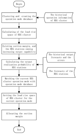 Flow chart of section margin allocation for REG clusters considering the randomness of source and load power.