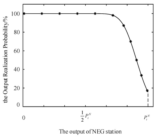 Combining Equations (6) and (7), the output realization probability can be obtained, and the image of the output realization probability of the REG station i to achieve power at moment t is shown in Figure 4.
