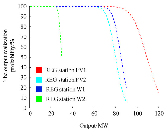According to the predicted output of each REG station and its probability density function, the output realization probability of each REG station can be obtained, as shown in Figure 7.