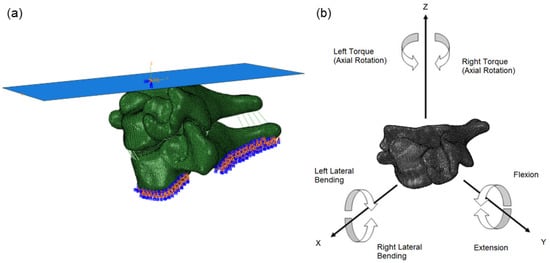 (a) Boundary conditions applied in the FSU model and (b) moments applied in the FEM.