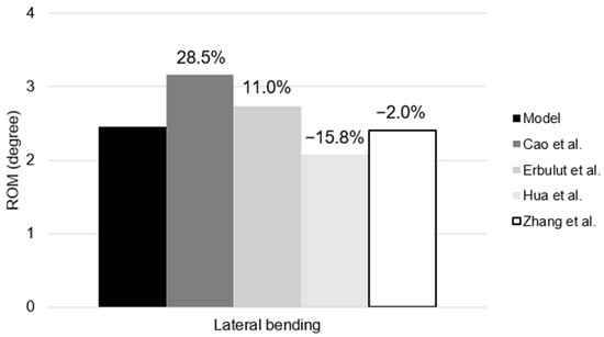 Lateral bending ROM of the FSU compared with previously validated FEM [14,32,33,40].