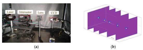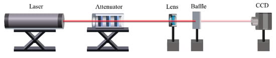 We performed a specific practical experiment to further testify the validity of our proposed method. Figure 10a shows the experimental platform of the CCD-based laser beam measurement system built to acquire the laser spot. First, the laser light is generated by the GY-10 He–Ne laser which has better stability and reliability. Then, the attenuator is added to attenuate the laser beam energy incident on the photosensitive surface of the CCD camera in order for the CCD to receive energy without oversaturation to protect the CCD camera, considering that the energy of the laser beam may far exceed the saturation energy value of the CCD detector or even exceed the damage threshold of the CCD image element, which may damage the CCD device. The laser beam enters the lens after attenuation, which is used to ensure that the laser beam is within the measurable range. Finally, the beam is passed into the CCD camera, which completes the acquisition of the laser spot image.