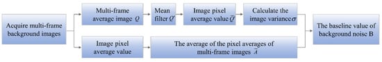 The laser spot is not disturbed by noise when collected under ideal conditions. However, it is inevitably affected by various noises in actual laser spot collection. The traditional method is setting a fixed threshold to remove the influence of background noise. Thus, the purpose of eliminating noise effectively is not achieved. In this paper, the baseline method based on the statistical characteristics of noise can be used to calculate the noise distribution from multiple background image frames to obtain the background noise baseline adaptively. The specific process is shown in Figure 3.