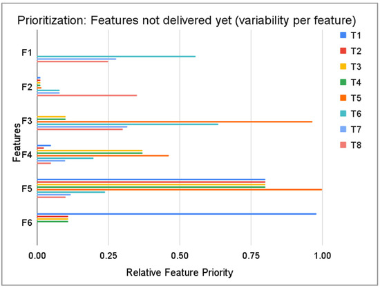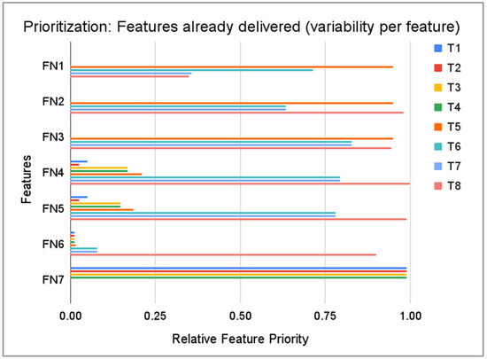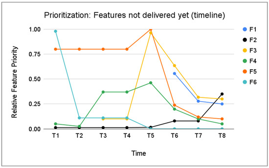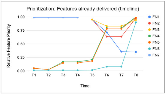 Moreover, in Figure 2 and Figure 3 only a subset of features is presented for legibility reasons, as the number of features was a few times higher. As we can see, even though the prioritisation was dynamically updated, we could find a situation where two (or more) features were having the same relative priority (FN7 in Figure 3 and F2 in Figure 2). In such a situation, the engineering team consulted with the Product Manager which feature should be selected for implementation. In this case feature F2 was chosen.