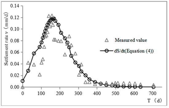 The Richards model curve is an asymmetric S-shaped curve. It can be seen from Equation (4) that v(t) = dS(t)/dt > 0, indicating that S(t) is a monotone increasing function about t; that is, under the action of additional load, the settlement deformation of a foundation continuously increases with time, and its settlement deformation rate is always positive.