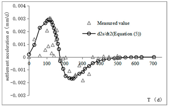 It can be seen from Equations (3)–(5) that S(∞) = a, v(0) = 0, and a(∞) = 0. This shows that with the gradual completion of the consolidation of the fill foundation, the final settlement of the foundation converges to a certain value, and the settlement deformation rate and acceleration converge to zero.