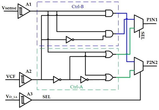 - Ctrl-A: When ISW > IL, ILA absorbs excess current, the sinking LA current increases, the output of the A1 comparator is high, and the output of P1N1 and P2N2 is high, resulting in the decrease in ISW and ILA. Due to the decrease in ISW, the sourcing current of ILA increases, and the output of A1 is low. At this time, when VCF is lower than VDD/2, the output of A2 comparator is high, resulting in P1N1 being low and P2N2 being high, increasing ISW. When VCF is higher than VDD/2, the A2 comparator output is low, resulting in P1N1 high and P2N2 low, which also increases ISW.