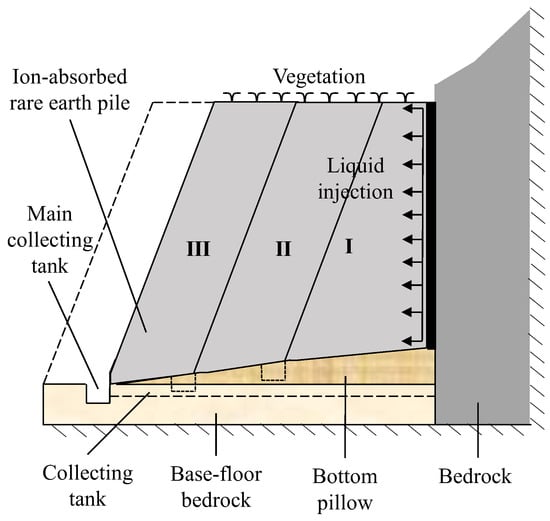 Rare earth resources in China are abundant and complete in their variety. Among them, the ion-absorbed rare earth that is rich in medium and heavy rare earth elements is widely explored in Jiangxi Province, China [1]. At present, the leaching methods that extract ion-absorbed rare earth elements from mines mainly include in situ leaching and heap leaching [2,3]. In, in situ leaching, it is difficult to fully explore or predict the discontinuities and inhomogeneities of the mineral deposits. It often leads to the unforeseen loss of leaching liquid, resulting in serious environmental pollution and resource waste [4]. Compared to in situ leaching, heap leaching is a more controllable method, and can effectively reduce the environmental pollution and resource waste. In addition, heap leaching is more efficient in the extraction rate for different grades of rare earth [5]. However, in the traditional heap leaching, the leaching liquid is injected into the rare earth pile from its top. This poses a huge challenge for quickly carrying out vegetation restoration on the top of the pile as the top is covered with leaching liquid for a long time [6]. Therefore, in order to realize the efficient and green development of ion-absorbed rare earth resources, it is necessary to develop an integrated technology of rare earth leaching and vegetation restoration.