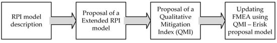Figure 1 shows the sequence of work developed and presented in this section. First, the RPI model previously developed to overcome the limitations associated with the RPN is described. Then, the proposal to extend the RPI model to include more than three variables (the original RPI model included only three variables) is described and analyzed. Then, the qualitative index to evaluate the mitigation capacity is proposed. Finally, the effective risk model (Erisk) obtained by the extended RPI model is proposed along with the qualitative mitigation index.