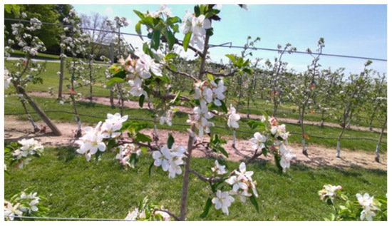 - Lee, J. The Detection of Fruit Flower Clusters in Apple Orchards Using Machine Learning. Master’s Thesis, University of Guelph, Guelph, ON, Canada, December 2021. [Google Scholar]