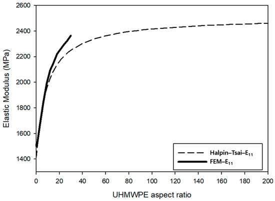 Elastic modulus (E11) according to the UHMWPE aspect ratio.