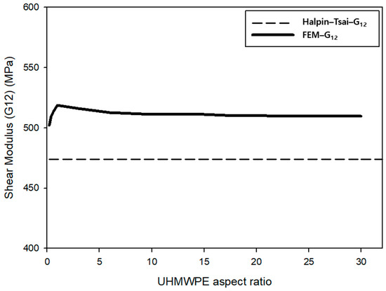 Shear modulus (G12) according to the UHMWPE aspect ratio.