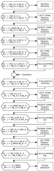 Just allocating the convolutional variables in the CPML region saves memory but increases the implementation complexity and the number of computational cycles (see diagram depicted in Figure 4) [18,34].