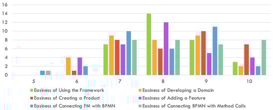 - Plugins that offer you a user interface to prepare the feature model and BPMN with constraints are given in the framework. On a scale of 1 to 10, 1 being the hardest and 10 being the easiest, how would you rate the easiness of creating a feature model and BPMN by using the Framework?