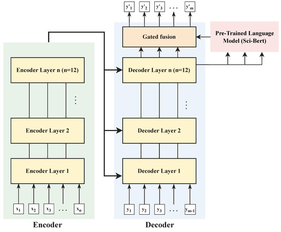 In the proposed method, the fully attentional network is used for the gated fusion layer. The Decoder network output and the pre-trained language model output are flat concatenated (Equation (11)).