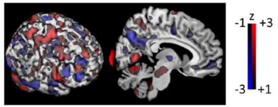 The extremely successful application of the GLM to the domain of neuroimaging has been enshrined in the method of statistical parametric mapping (SPM). Developed by Friston and colleagues, it is the most widely used neuroimaging analytic tool that has been used for research purposes since the 1990s [76,77]. It allows users to run voxel-wise GLM analyses and provides options for multiple comparison corrections that are tailored for neuroimaging data. The output of this mass univariate analysis is a statistical parametric map such as that seen in Figure 2—an image where voxel values are assumed to be distributed under a known probability density function (e.g., t-distribution). These maps are the primary output of SPM and are used as evidence for or against the null hypothesis at the level of the voxel [76,77]. This method of generating parametric maps has resulted in the eponymous software package known as “SPM”, of which the latest version as of publication is SPM12 (Wellcome Trust Centre for Neuroimaging, London, UK).