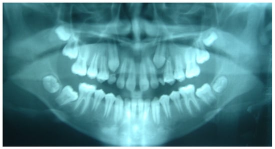 - Grover, P.S.; Lorton, L. The incidence of unerupted permanent teeth and related clinical cases. Oral Surg. Oral Med. Oral Path. 1985, 59, 420–425. [Google Scholar] [CrossRef]